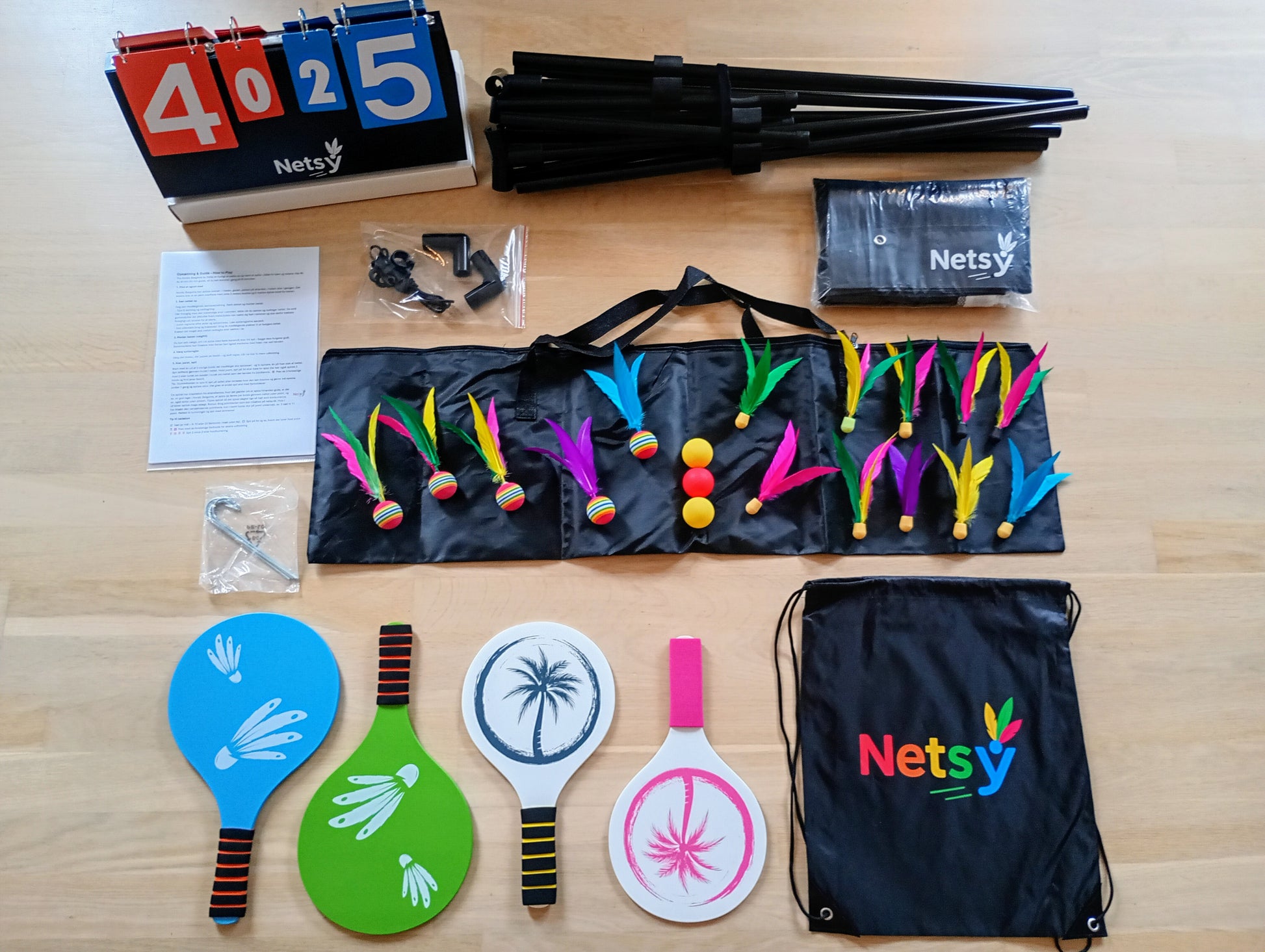 Nordic Batgame er inspireret af strandtennis, badminton, pickleball og bordtennis, og stadig en helt ny oplevelse. Her får du Premium spillesættet. Spil i haven, i hallen, på stranden, i parken, i stuen eller på ferien. Masser af udstyr til flere spillere, og hele året, samt de officielle spilleregler og dansk samlevejledning. Premium er inkl. net, metalramme, pløkker til vindsikring, lækker pointtavle til de intense kampe med spilleregler, 4 bats, 3 unikke bolde (gummi) og hele 15 fjerbolde! Så kan venner, børn og familie være med – og der er rigeligt med fjerbolde, hvoraf flere unikt farvede, til hele året. I den medfølgende Gearbag kan bats, bolde og fjerbolde opbevares, og hele spillesættet i den medfølgende opbevarings- /transporttaske. Det er Premium. Se listen over udstyr nedenfor.