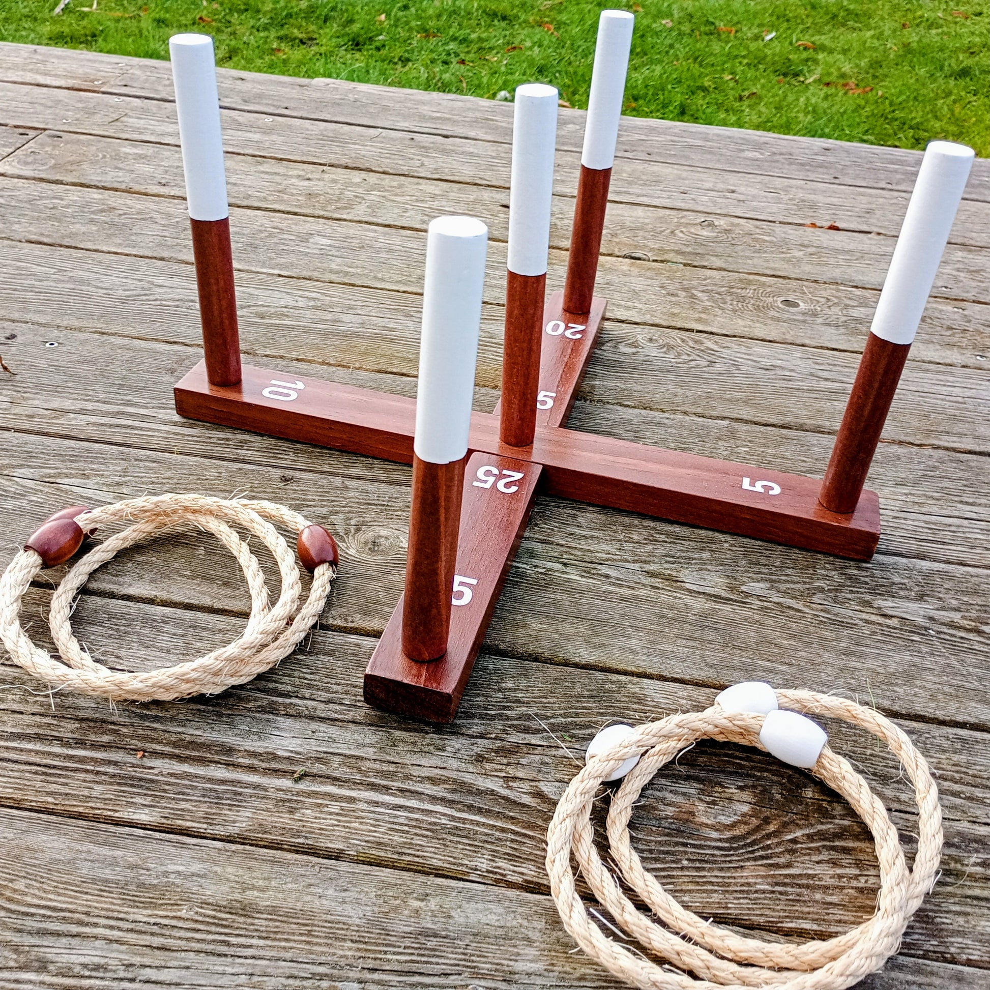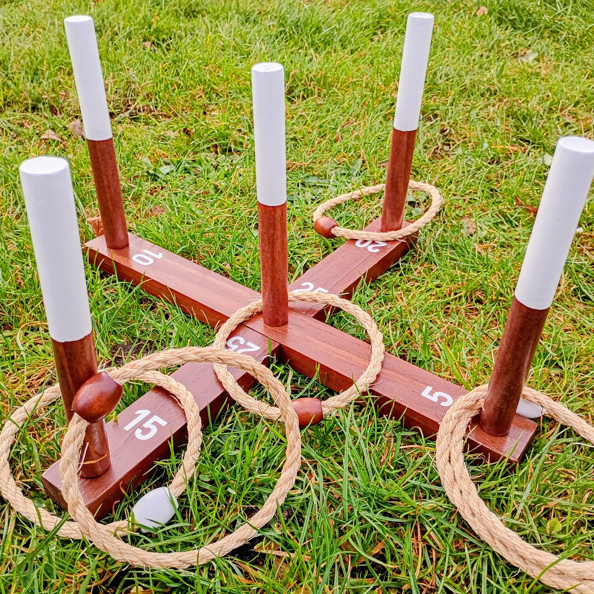 Spillet leveres med 2 x 3 lækre ringe i kraftfuld reb og med tydelig markering i hvid og brun farve så der nemt kan dystes. Dertil et lækkert ringspil med pointanvisning. Der medfølger desuden en bæretaske, som gør det nemt at transportere og opbevare spillet. Perfekt til stranden, haven og parken.